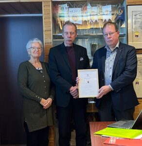 Palkinnon vastaanottivat Anja Holpainen, Jorma Vähä ja yhdistyksen puheenjohtaja Matti Ylipiessa.